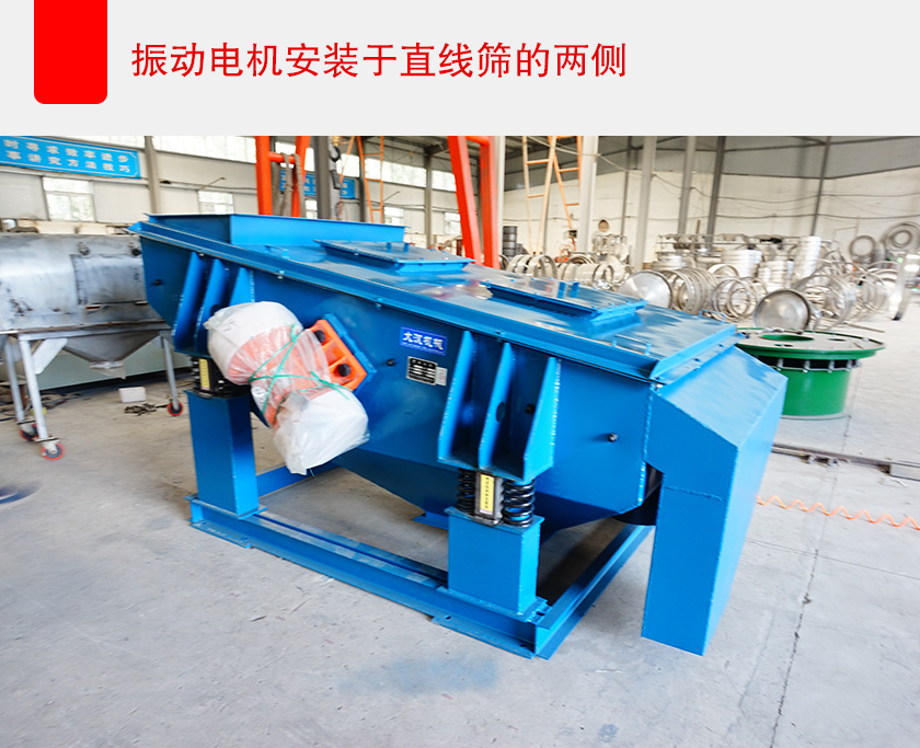 直線篩的篩箱的高度通常是一定的,所以不能對篩箱的高度做調整,那么可以將振動電機安裝在直線篩的兩側,而不是安裝在設備的底部,這樣可以大大的降低設備的整體高度,滿足客戶對直線篩整體高度的限制要求,又不影響設備的工作效率。